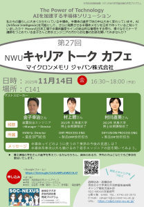 2025年10月21日/作成者: Iwaki11/14(金) 第27回キャリアトークカフェ(マイクロンメモリ ジャパン株式会社)@C141