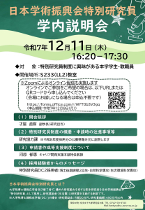 2025年11月14日/作成者: Iwatsuki12/11 日本学術振興会特別研究員 学内説明会のお知らせ