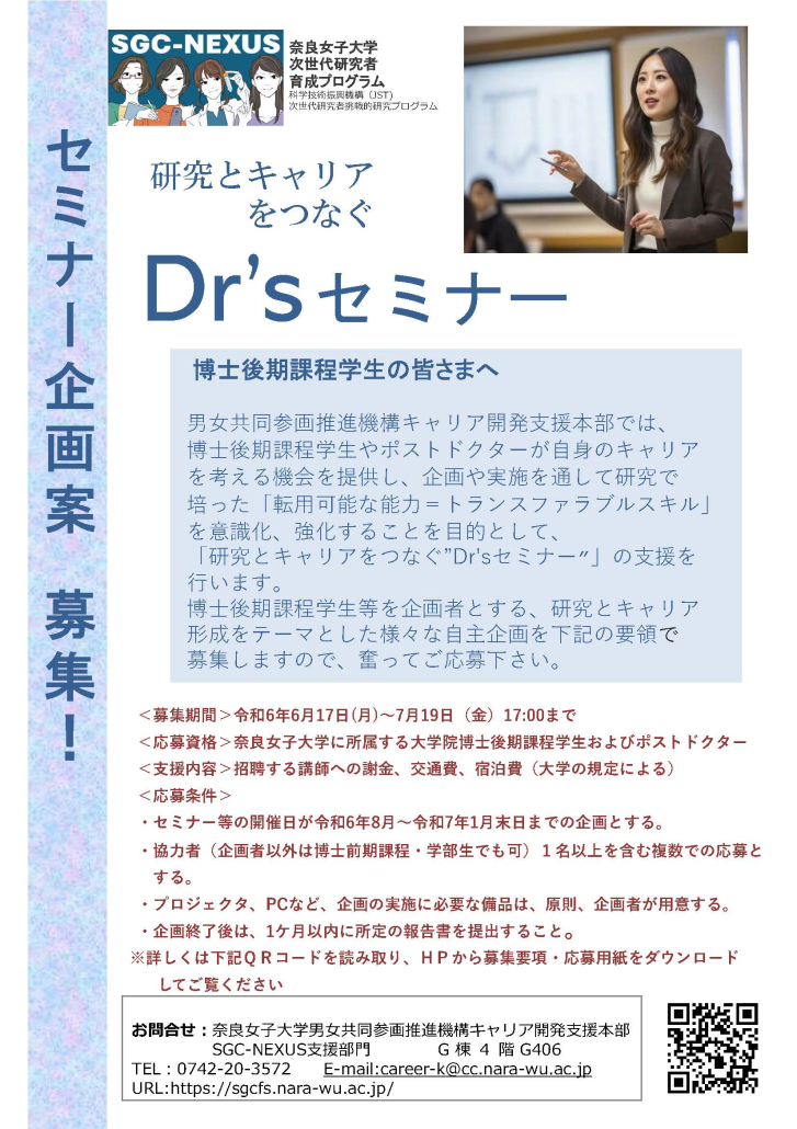 研究とキャリアをつなぐ ”Dr’s セミナー” 企画案 募集のお知らせ