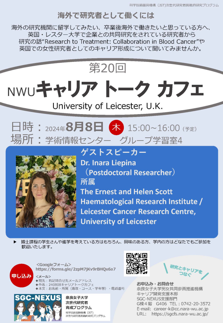 第20回 NWU キャリアトークカフェ<ゲスト:レスター大学研究者Dr. Inara Liepina>