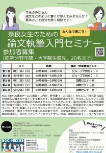 奈良女生のための論文執筆入門セミナー<研究分野不問・大学院生優先・20名まで>申込〆切7/28