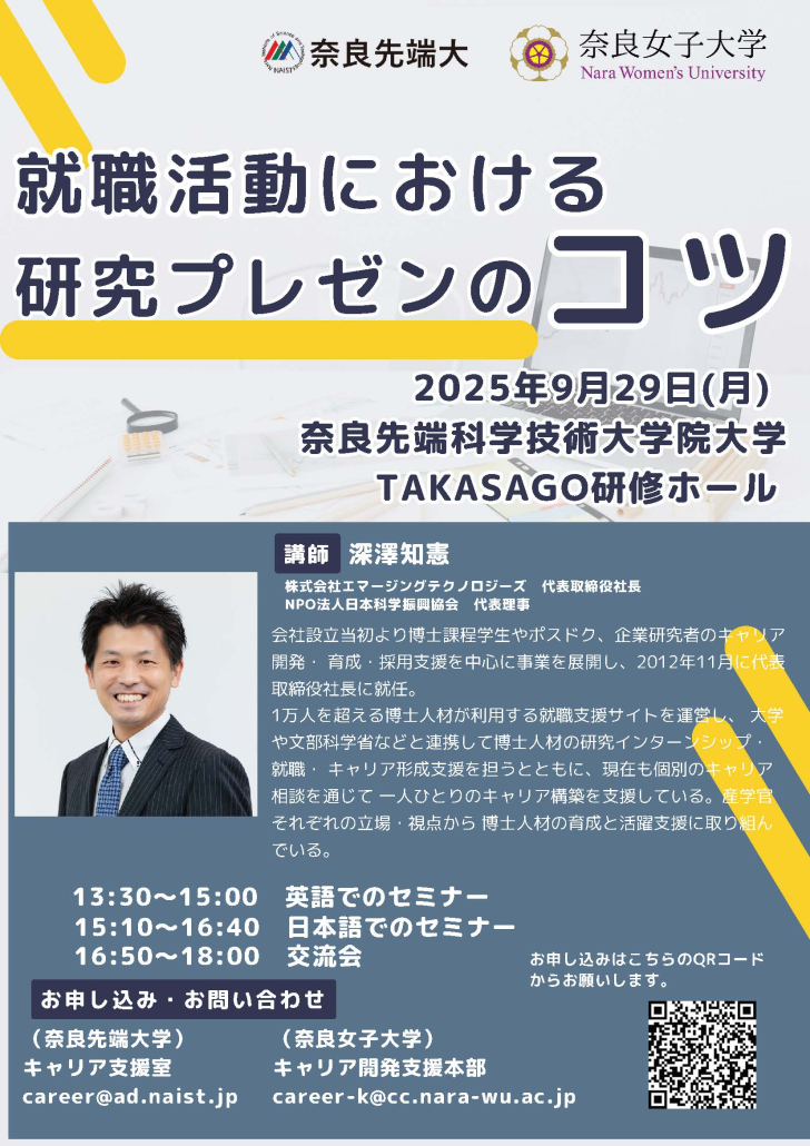 場所 : 奈良先端科学技術大学院大学 TAKASAGO研修ホール
