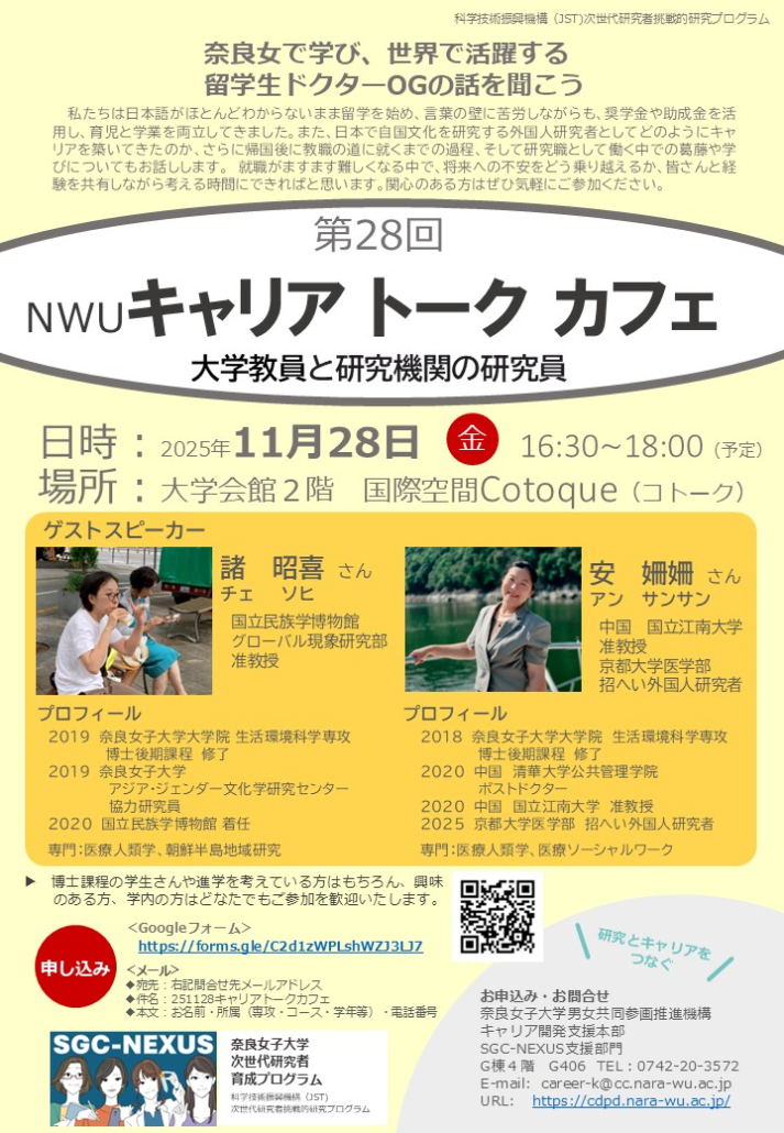 詳しくは添付チラシ1128_キャリアトークカフェ_28 チェさん 安さん をご覧ください。