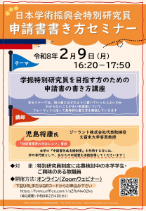 ご案内チラシ:日本学術振興会特別研究員申請書書き方セミナー(R8.2.9)