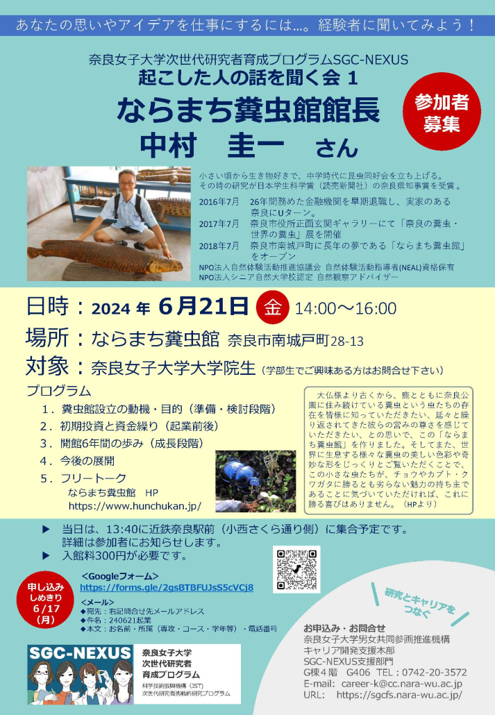 詳しくはこちらの案内 起こした人に聞く会1:ならまち糞虫館館長中村さんをご覧ください。
