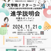 Iwaki2025-10-21 14:08:442025-10-21 16:21:2811/25開催!令和7年度 奈良女子大学大学院ドクターコース (人間文化総合科学研究科博士後期課程) 進学説明会