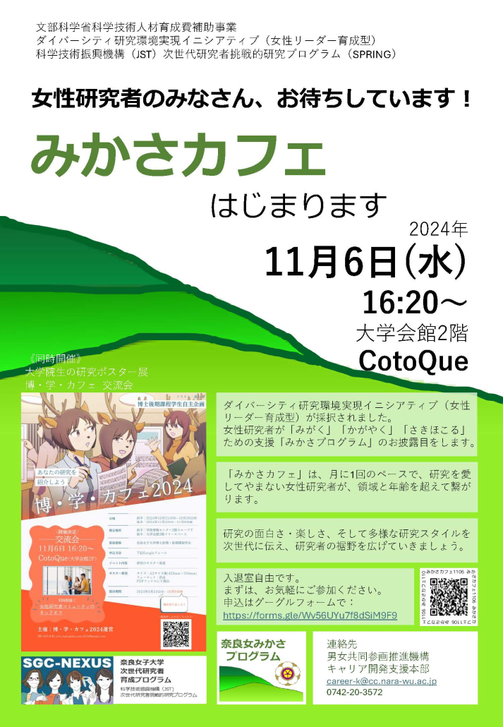 女性研究者の皆さま「みかさカフェ」にご参加ください!